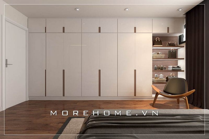 Tủ quần áo gỗ công nghiệp hiện đại là sự kết hợp giữa ngăn kệ và tủ đầy tiện dụng với phong cách thiết kế đẹp mắt.