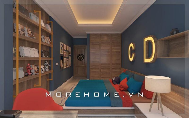 Nội thất phòng ngủ bé trai hiện đại với chất liệu màu nâu trầm sẽ tạo nên một không gian ấm cúng hơn cho phòng ngủ của con bé.