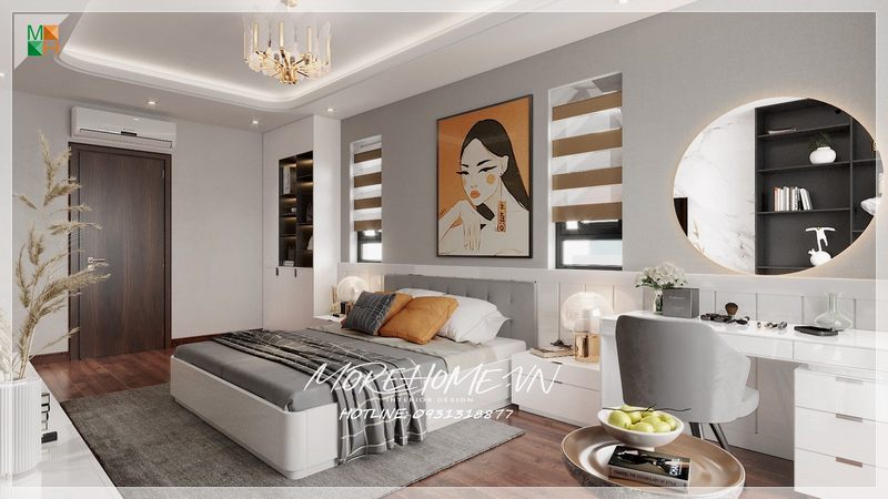 Người dùng đã bị ấn tay bởi mẫu thiết kế nội thất phòng ngủ sang trọng tinh tế với đường nét độc đáo của phào nổi trội phong cách tân cổ điển, phù hợp với các loại nhà ở như chung cư, nhà phố, biệt thự.