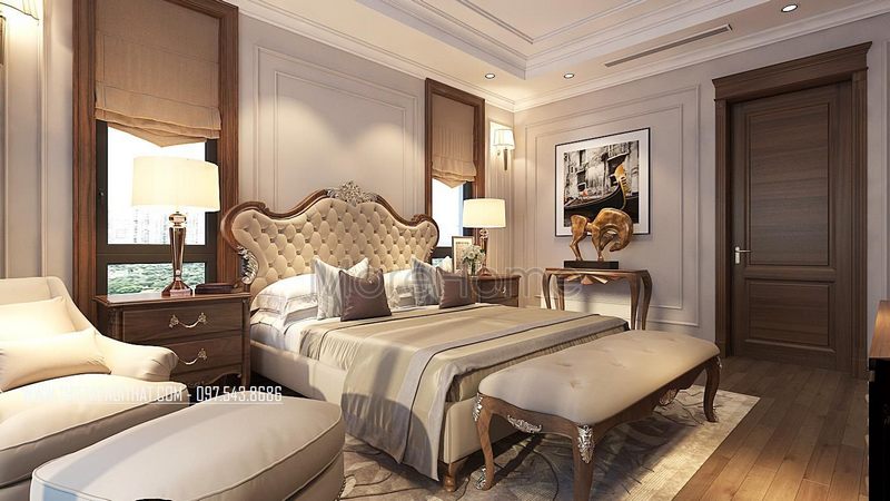 Tủ quần áo gỗ óc chó tân cổ điển được thiết kế đẹp để trang trí phòng ngủ.